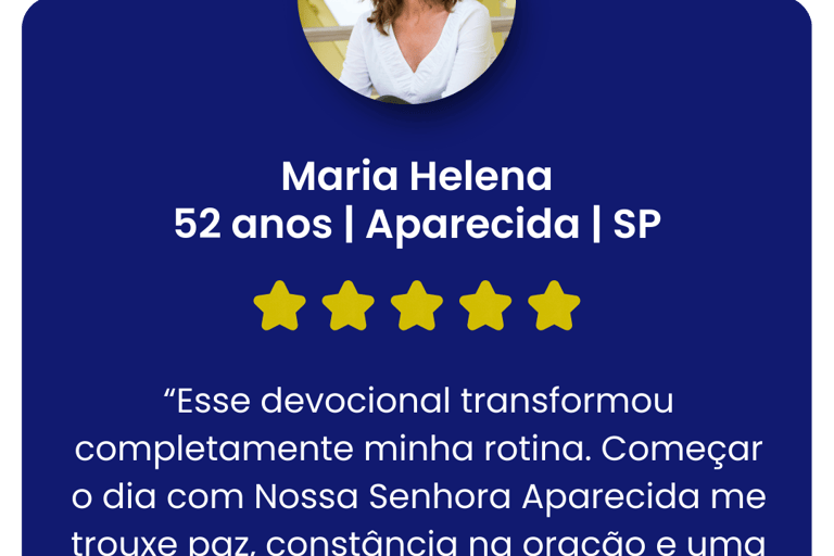 Este devocional é para homens e mulheres que desejam fortalecer sua fé, criar uma rotina diária de oração e viver mais próximos da presença de Deus, sendo guiados pela intercessão de Nossa Senhora Aparecida ao longo de 365 dias.