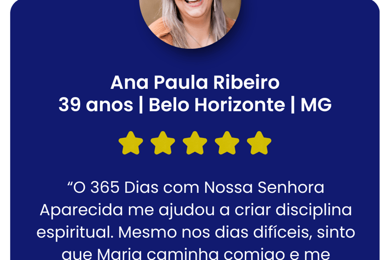 Aproveite esta oportunidade para fortalecer a sua fé, criar uma rotina espiritual sólida e viver 365 dias mais próximos da presença de Deus, sempre guiado por Nossa Senhora Aparecida.
