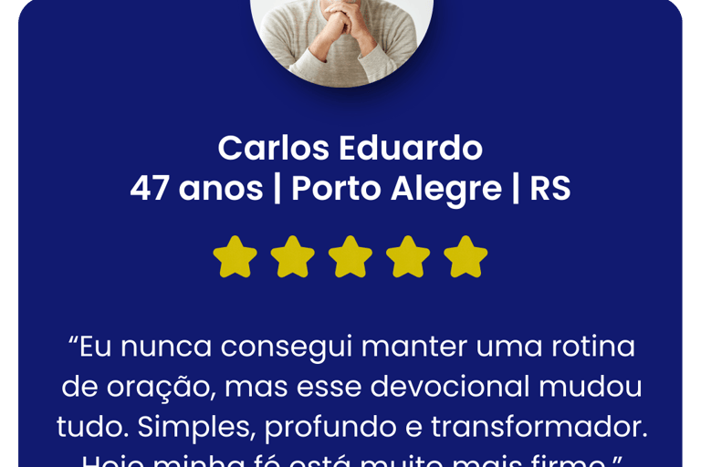 Cada bônus foi cuidadosamente criado para apoiar sua caminhada com oração, constância e equilíbrio espiritual: tudo o que uma pessoa de fé precisa para viver uma jornada transformadora na sua vida.